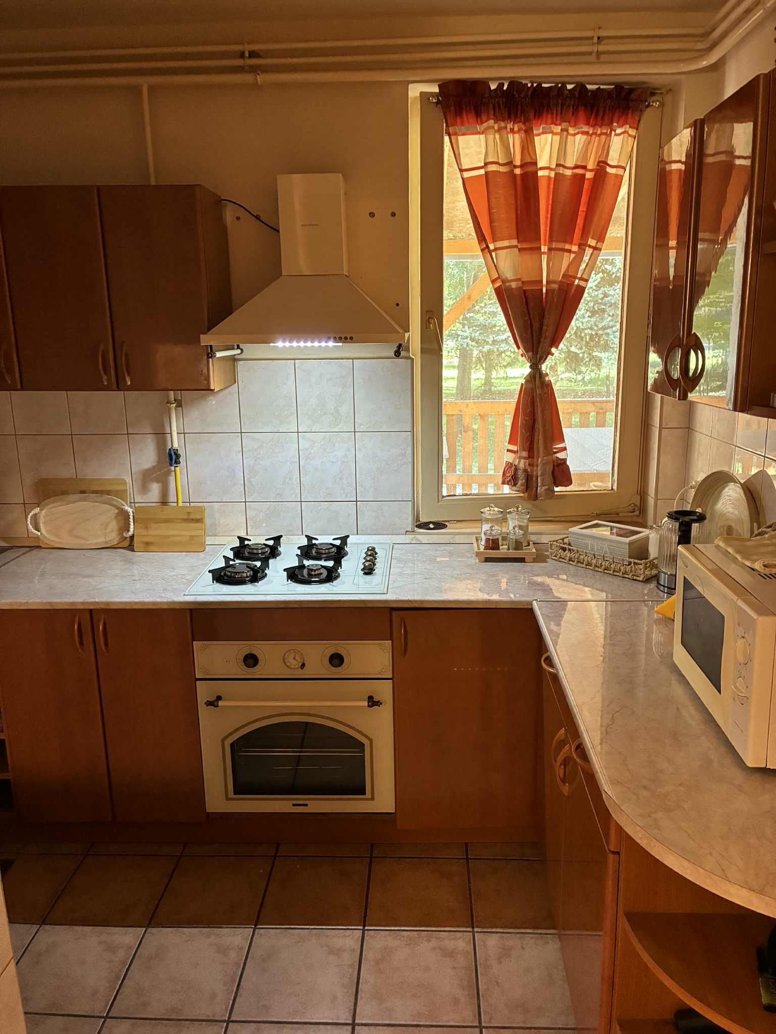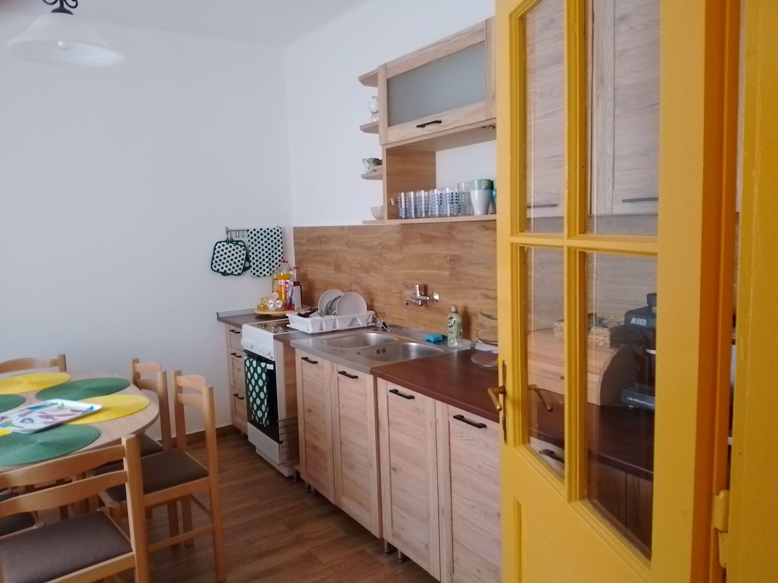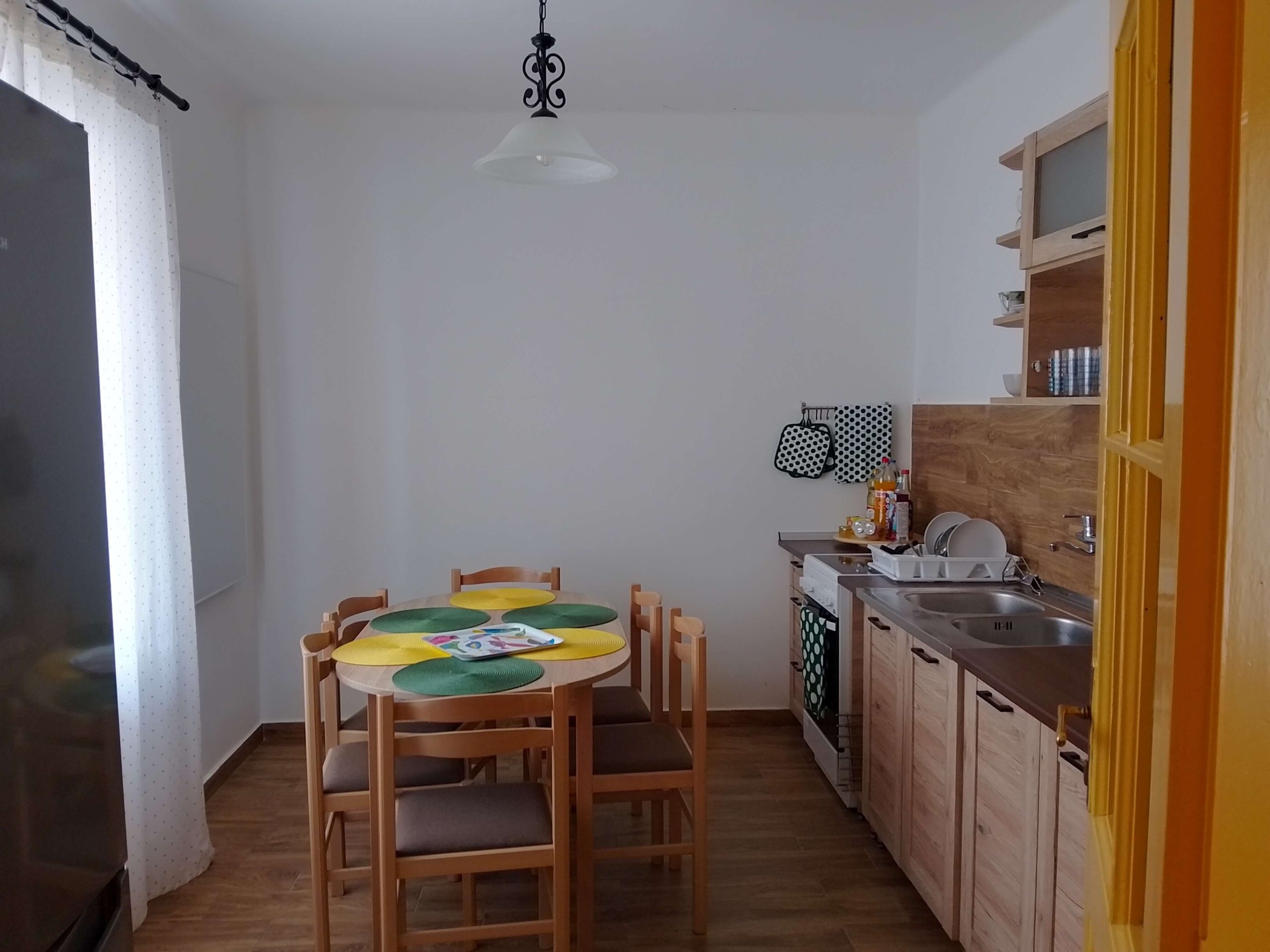 A földszinten jól felszerelt konyha és hozzá tartozó étkező kapott helyet egy az étkezőből nyíló fedett terasszal. Természetesen itt is megtalálhatóak mellékhelyiségek.