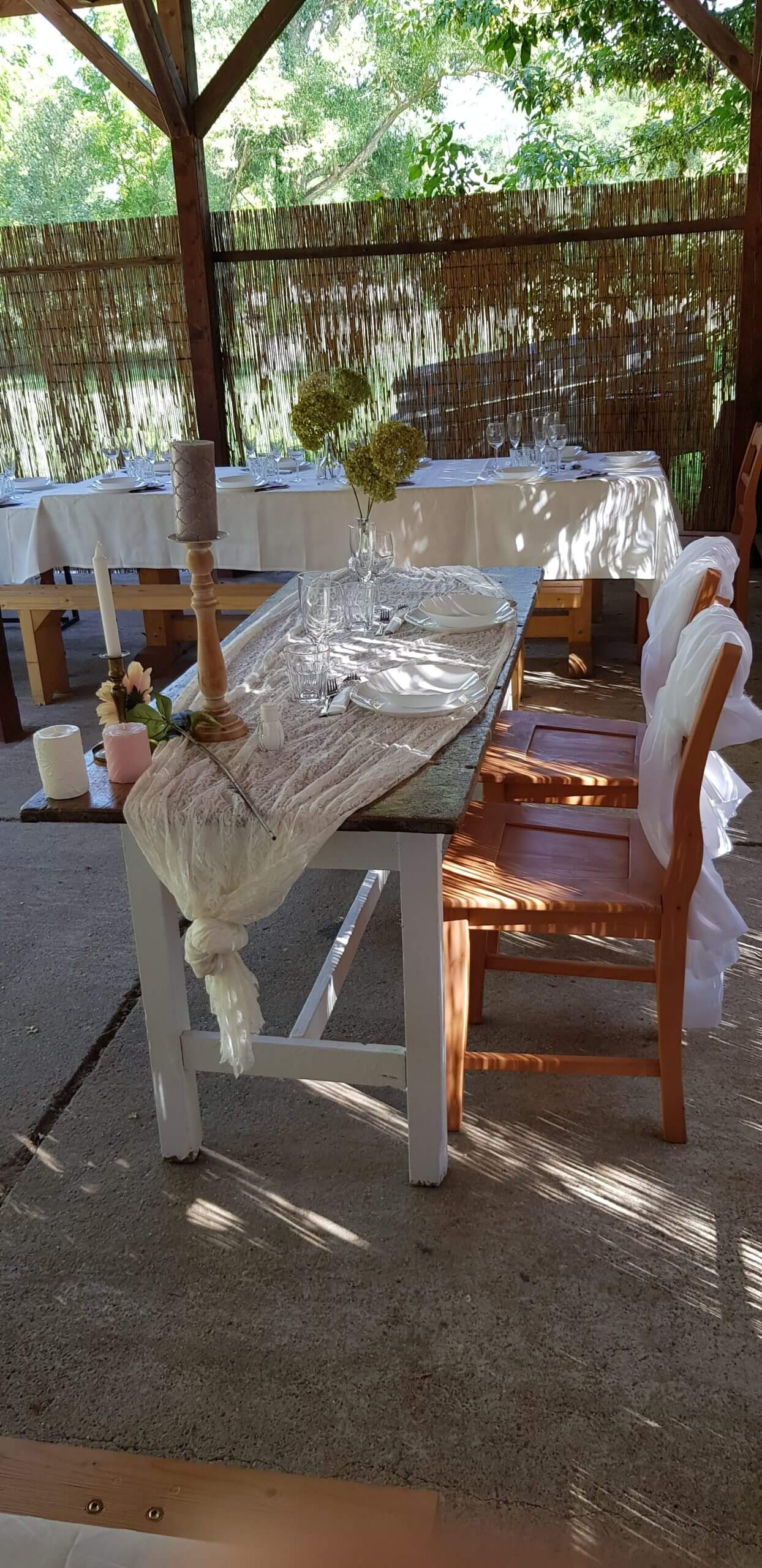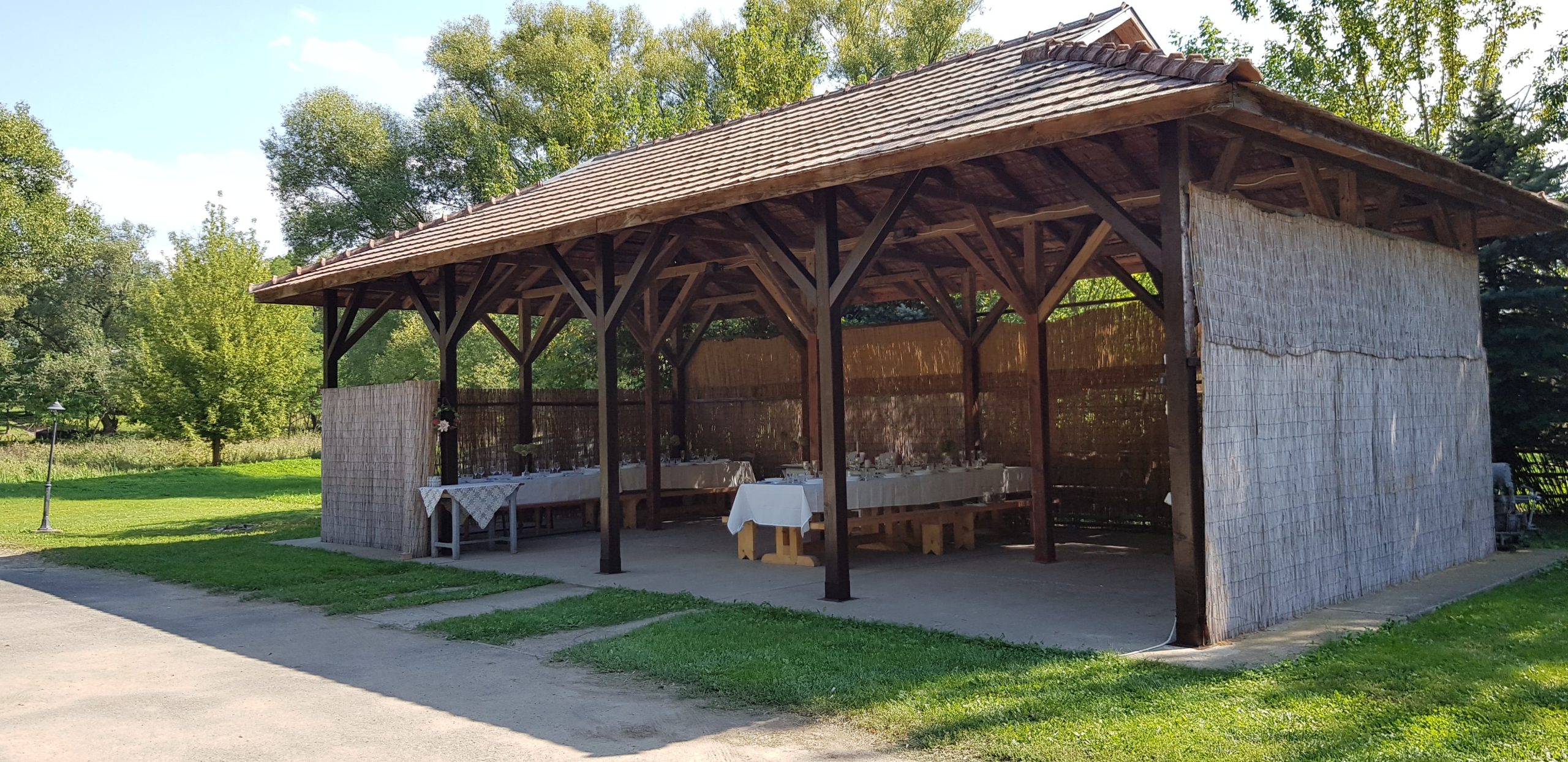 Az épület mellett közel egy hektáros park terül el a patakparton. A háztól ötven méterre egy nagy területű fedett terasz áll, közvetlenül a körbekerített korszerű játszótér mellett.